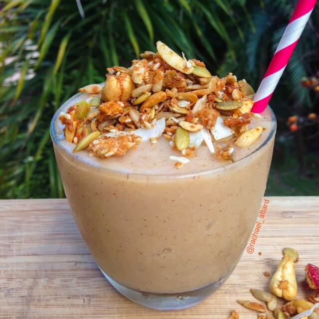 Apple Crumble Breakfast Smoothie Ingredients 1 large apple, sliced and frozen 1 cup almond milk 1 tsp vanilla 1 tsp cinnamon 1/2 tsp nutmeg 1/2 tsp all spice 2 tbsp maple Paleo Hero primal muesli Method Blend…