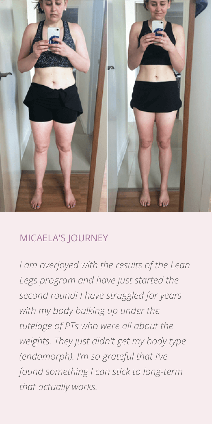 Most girls see results after 4 weeks, but if you don't see it don't get discouraged! Each body and journey is different & you might need a bit more time. If you feel like you need some motivation or you have some questions please join our Lean Legs Facebook Group. It's totally free and this is where all the girls share their personal stories and motivate each other as well.